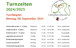 Turnbeginn und Turnzeiten 2024/2025